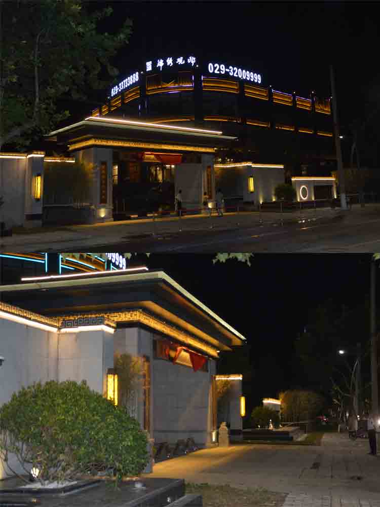簡(jiǎn)介—— 2018 榮盛景秀觀邸售樓部亮化,蘭光設(shè)計(jì)師根據(jù)其榮盛景秀觀邸售樓部商業(yè)屬性,商業(yè)照明設(shè)計(jì)明亮而醒目,營(yíng)造商業(yè)經(jīng)營(yíng)的夜景氛圍。以靜態(tài)的暖色燈光將其打亮,凸顯雅致。“榮盛景秀觀邸”標(biāo)志以高亮度的燈光,吸引顧客注意,增強(qiáng)商業(yè)宣傳力度。景觀燈造型與建筑外立面造型完美融合,晚上光斑效果與綠植景觀交相輝映,相映成趣!榮盛景秀觀邸