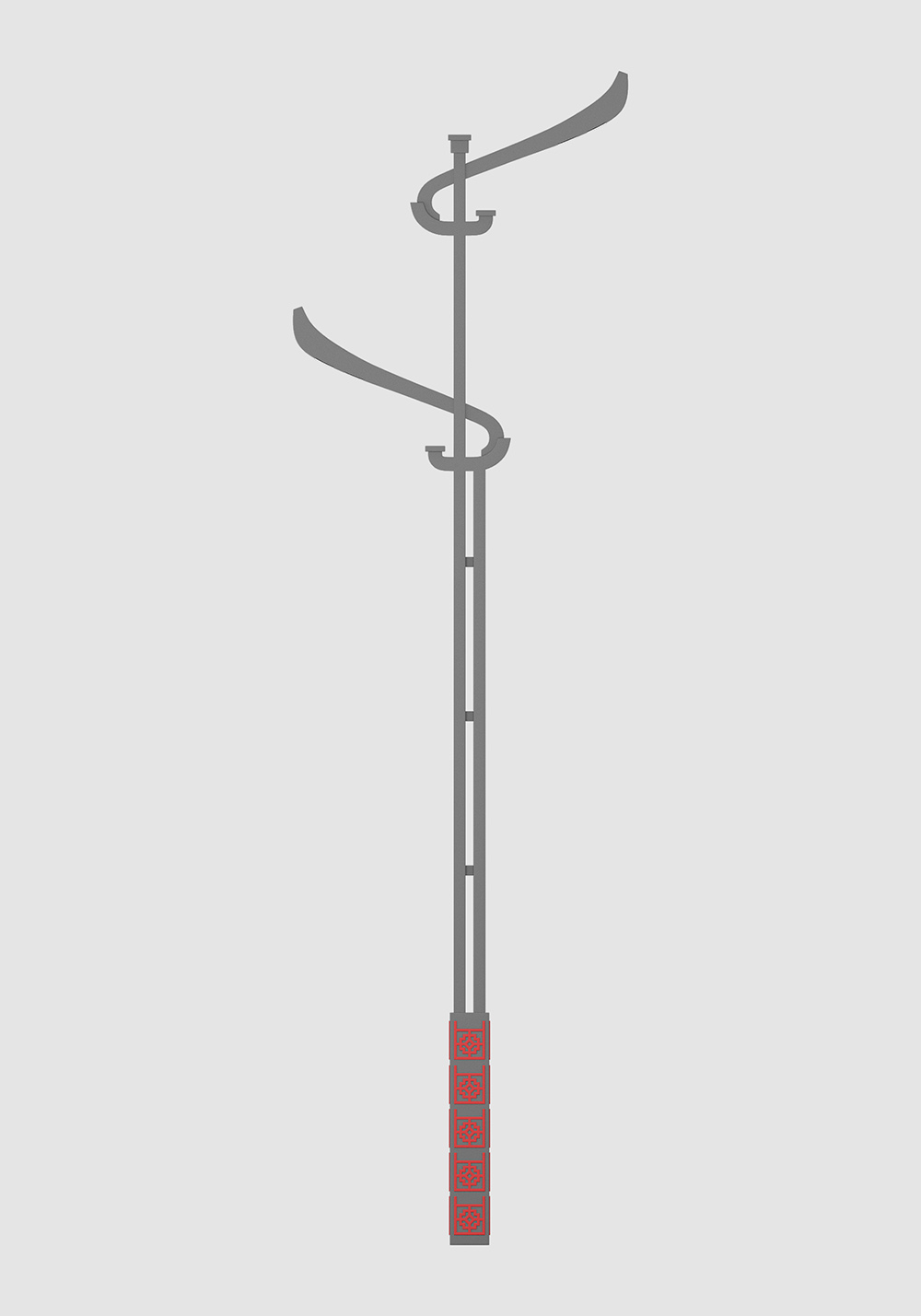 設計要點:經歷時許,方知時光易逝,回首前世,聞見不凡簡史,此燈具借鑒傳統建筑中的斗拱樣式,經過簡化修改,燈具上部采用方管拼接,錯位焊接,燈頭部分采用優美弧度曲線,頂部采用方形裝飾蓋,下部立體圖案,整體簡潔大氣,優雅靈動,適合文化氛圍強的區域。